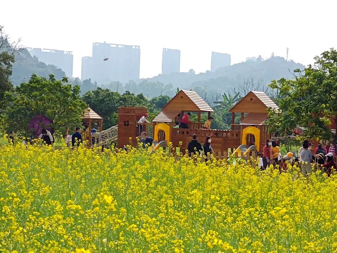 儿童公园就在油菜花田的旁边,带娃前往的街坊在这里就可以做到溜娃拍照两不误啦!