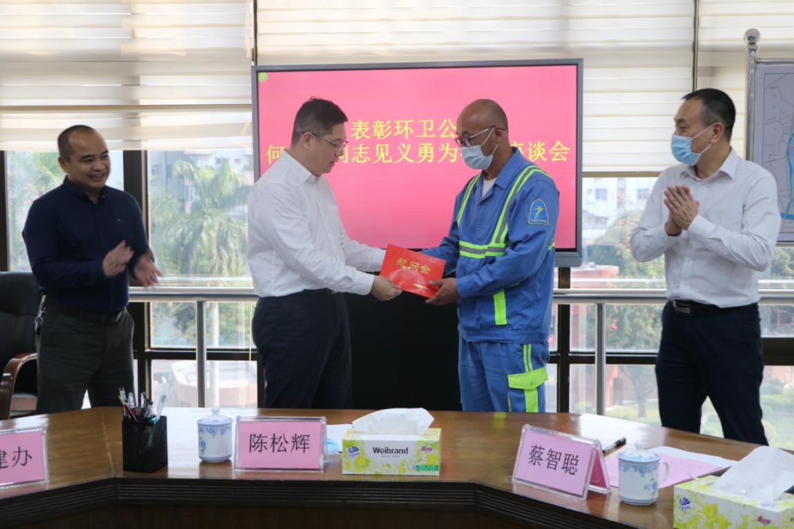 3月3日下午,市桥街召开见义勇为表彰座谈会,表彰环卫公司何水明同志见义勇为事迹,号召社会大力倡导见义勇为精神,大力弘扬社会正气。