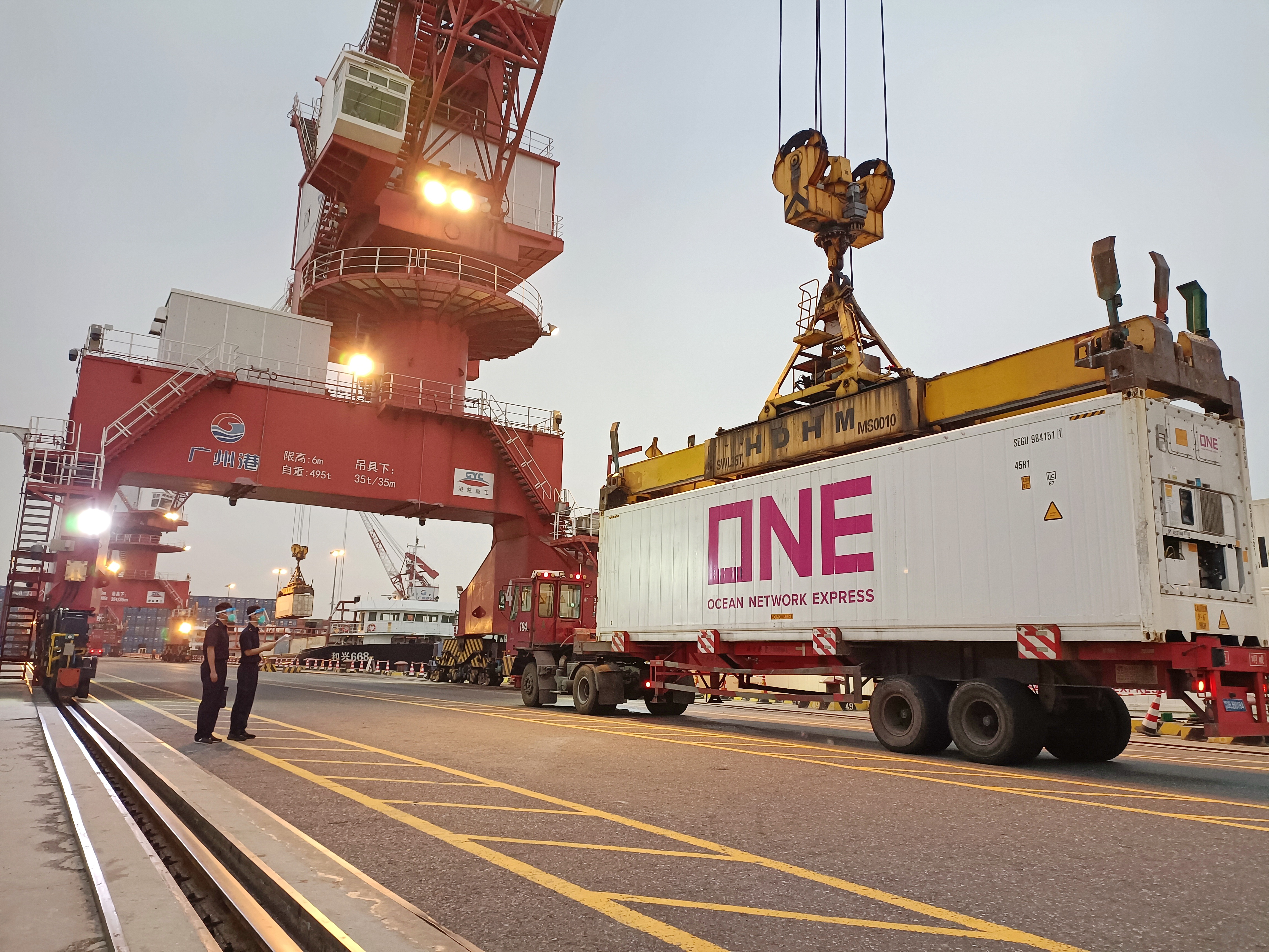 穗港守望相助,为解决客户的燃眉之急,南沙三期和南沙海关紧密合作,建立起供港物资的“绿色快速通道”。南沙三期提前了解供港物资出口和驳船到港时间,港口专用泊位安排港澳驳船优先靠泊,保障机械和人力资源投入,专人跟进确保供港集装箱快速装船。