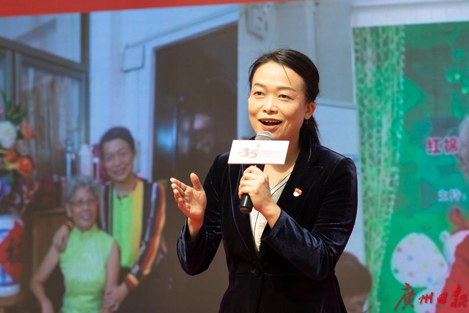 广药集团职工、向秀丽·雷锋志愿服务队成员季文静则分享了向秀丽舍己奉献、雷锋助人为乐精神在工作和生活中交相辉映、生根发芽的故事。据介绍,向秀丽·雷锋志愿服务队每年春节都坚持陪孤寡老人逛花街、买年货,一做就是13年;在荔湾南片区实施封闭管理期间,志愿服务队员自发组织,24小时运转担起居民送药服务;广药集团还践行“广药白云山爱心满人间”的服务理念,造好药、放心药,为老百姓回收旧药品、免费换新……