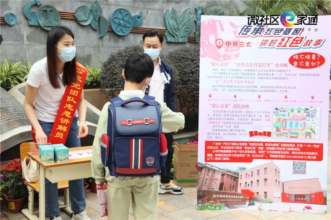 今年的爱心义卖活动,东山培正小学创新模式,引进“红色公交”,设置“红色地标”打卡点,引导学生在实践中感知红色文化,了解红色历史,传承红色基因。