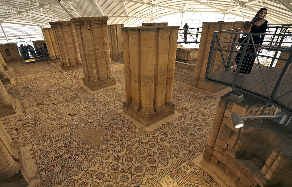 新造的穹顶面积达2500平方米,保护马赛克地板不受极端温度、湿度和雨水影响。如今,游客可以在垫高的走廊中俯瞰这方巨大的马赛克地板。