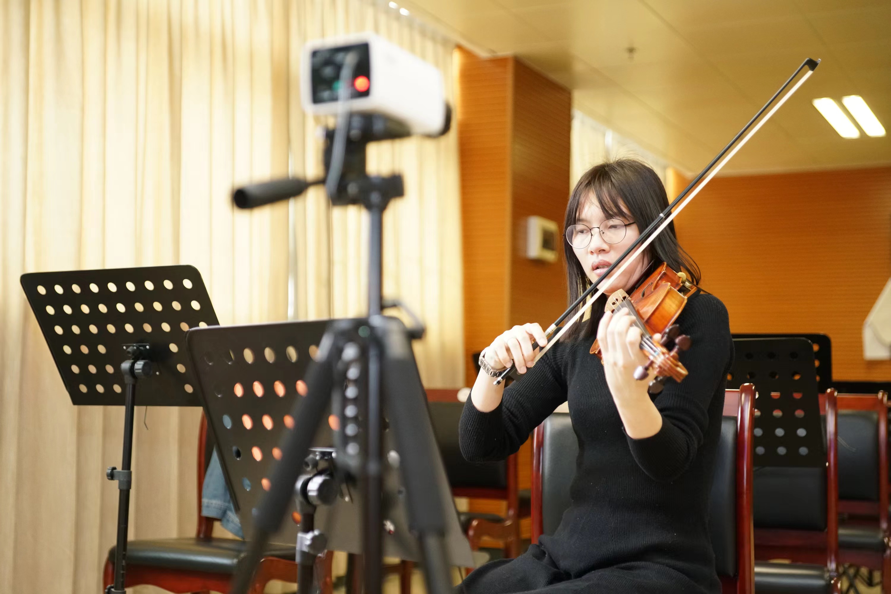据了解,去年学校新设置的“空灵鼓”课程,成为课程中的“黑马”,受欢迎程度超出了学校的意外。原本计划开一个班,最终空灵鼓专业开了3个班。而今年,舞蹈、器乐、声乐、书画、文学、中医、电脑类专业等仍旧是热门专业。“我们会和学员互动检验学员的上课成果。比如我们开启视频连线让学员表演,然后课堂点评,或者学员课下自己录制视频上传到微信群,我们进行一一点评。”小提琴课程负责老师告诉记者。