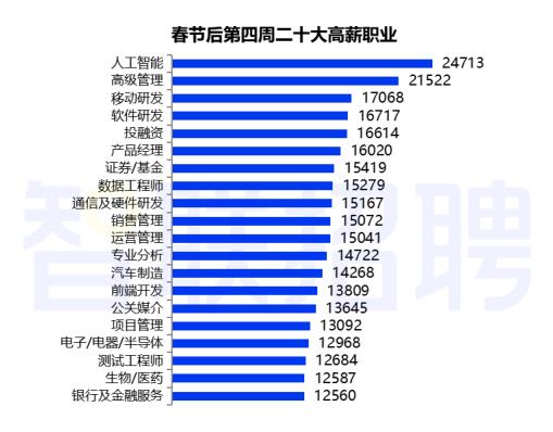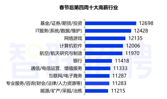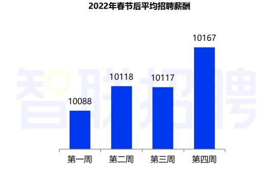 3月7日,招聘平台(智联招聘)发布2022年春招市场行情周报(第四期)显示,春节后企业招聘薪资整体平稳,第四周小幅涨至10167元/月。节后首月物流、餐饮、娱乐行业招聘需求同比大幅提升。