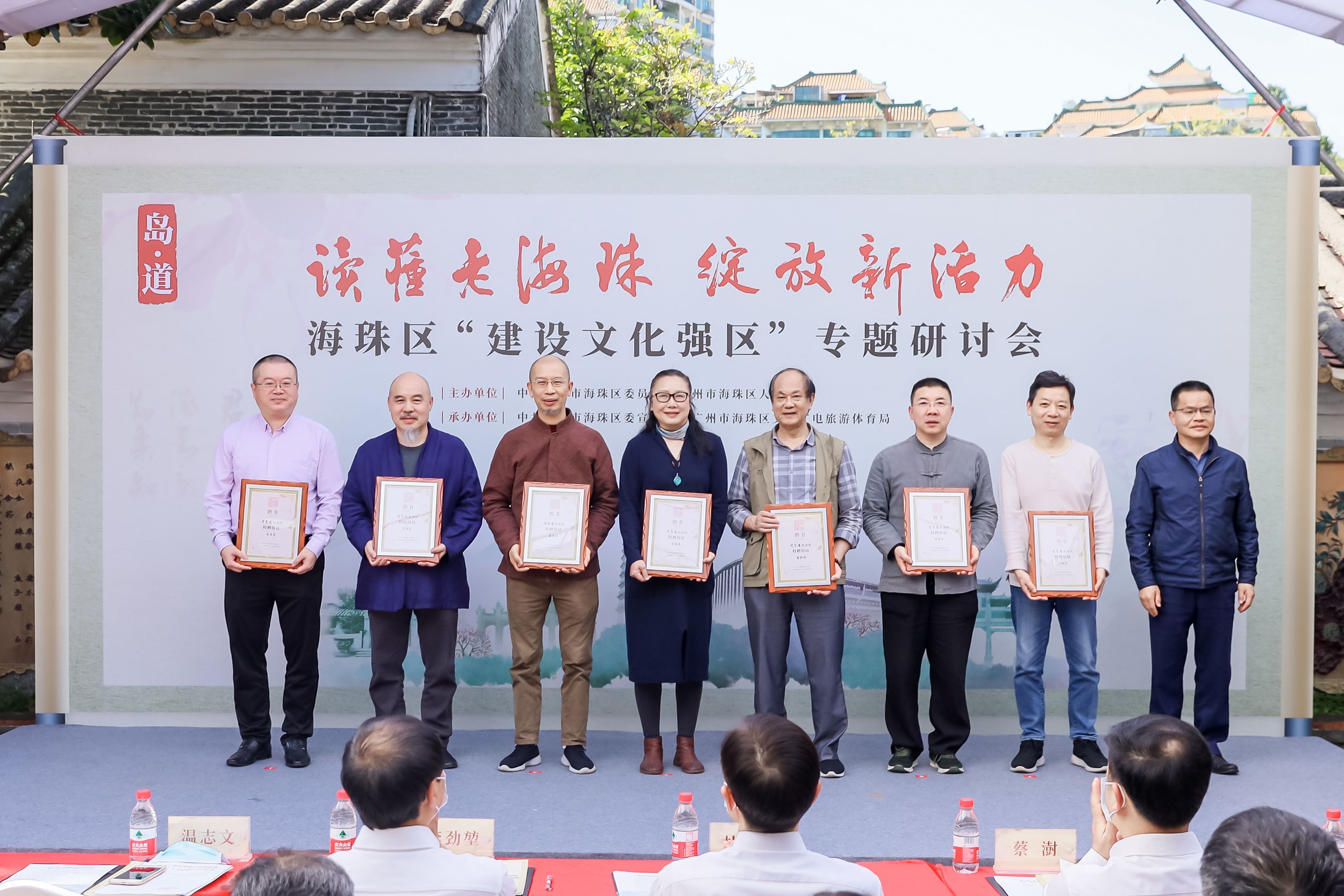 一场让人如沐春风的文化研讨活动为海珠文化发展聚势谋远、擘画未来!3月7日下午,由中共广州市海珠区委员会、海珠区人民政府主办,中共海珠区委宣传部和海珠区文化广电旅游体育局承办的“岛·道”系列研讨活动文化专场在十香园纪念馆举行。当天的活动包括参观岭南名家小品联展、海珠区宣传思想文化智库专家聘书颁发、十香园纪念馆顾问团聘书颁发、专家学者主旨分享和研讨交流等内容。