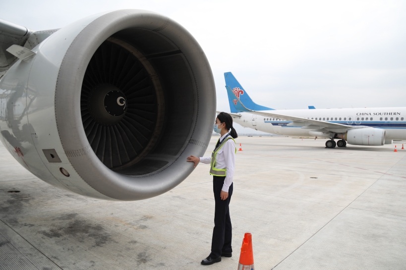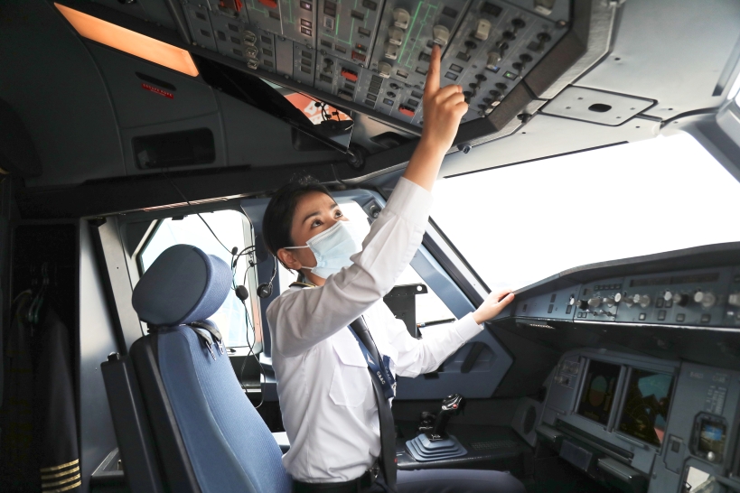 飞行前,刘晓琳在驾驶舱按规定进行一系列的检查确认。
