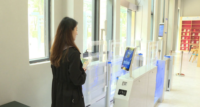 不仅如此,民科园分馆还是全国第一个应用高频无感借还书技术的街区图书馆,是一间科技感十足的智慧型图书馆。“无感借书通道通过人脸识别、红外感应以及数据算法等技术联动,实现智能辨识读者和图书信息。读者无需复杂操作,拿着书经过闸门时,就可以自动刷脸借阅了。”图创软件公司技术人员彭懿介绍。