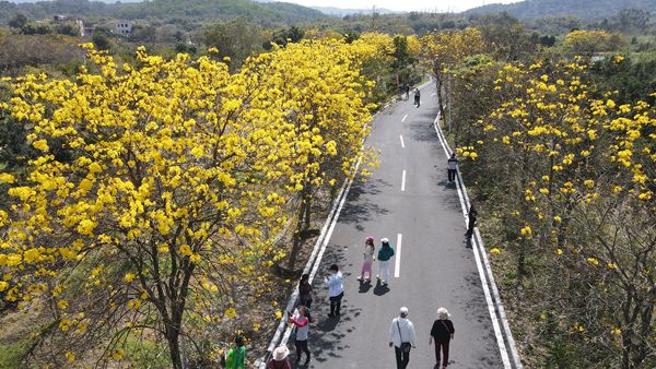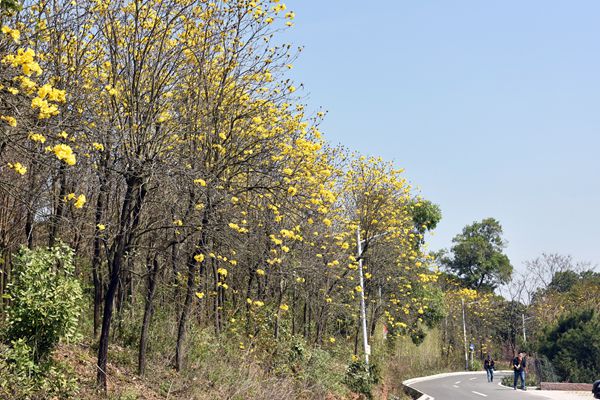 道路两旁的黄花风铃木盛开。信息时报记者 叶伟报 摄。信息时报记者 叶伟报 摄
