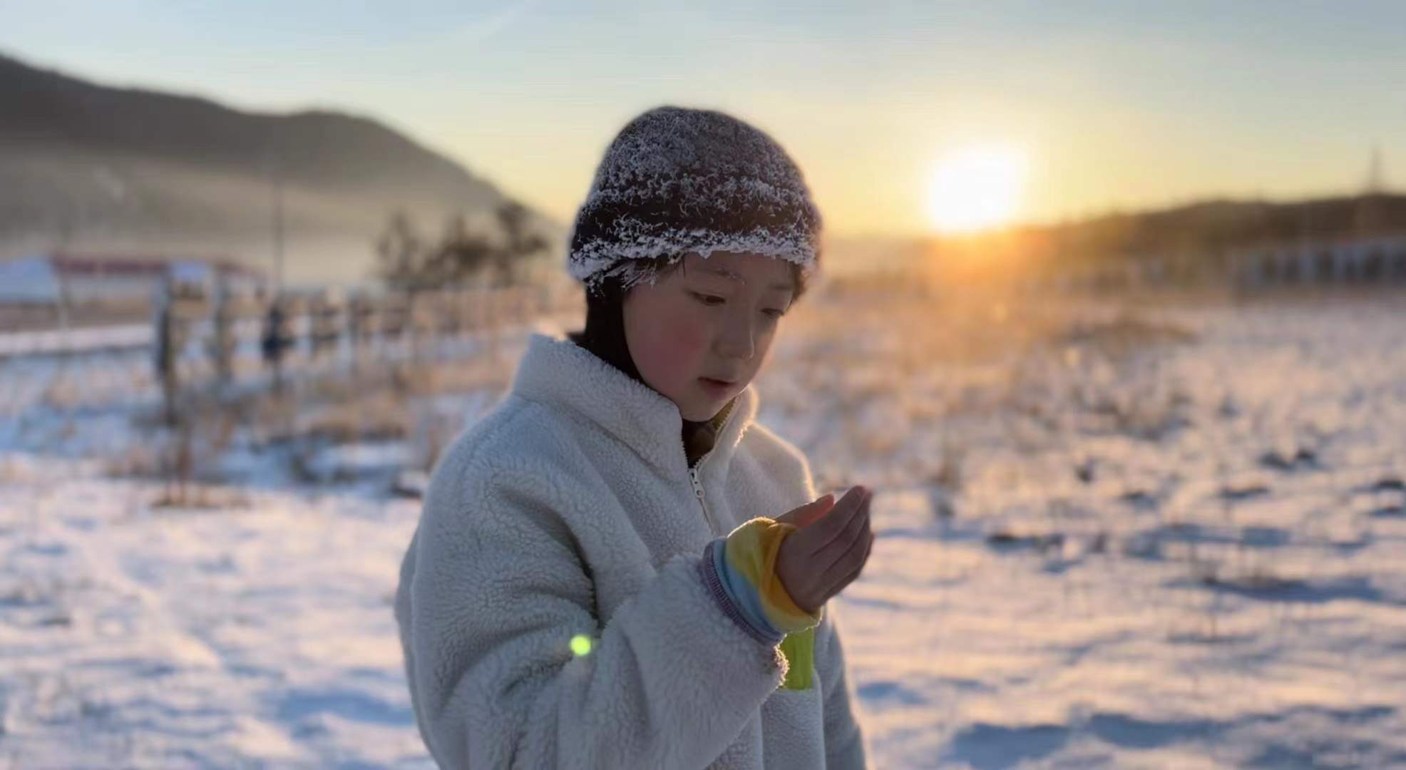 晨跑之后,涵之的睫毛、眉毛上都结了冰霜