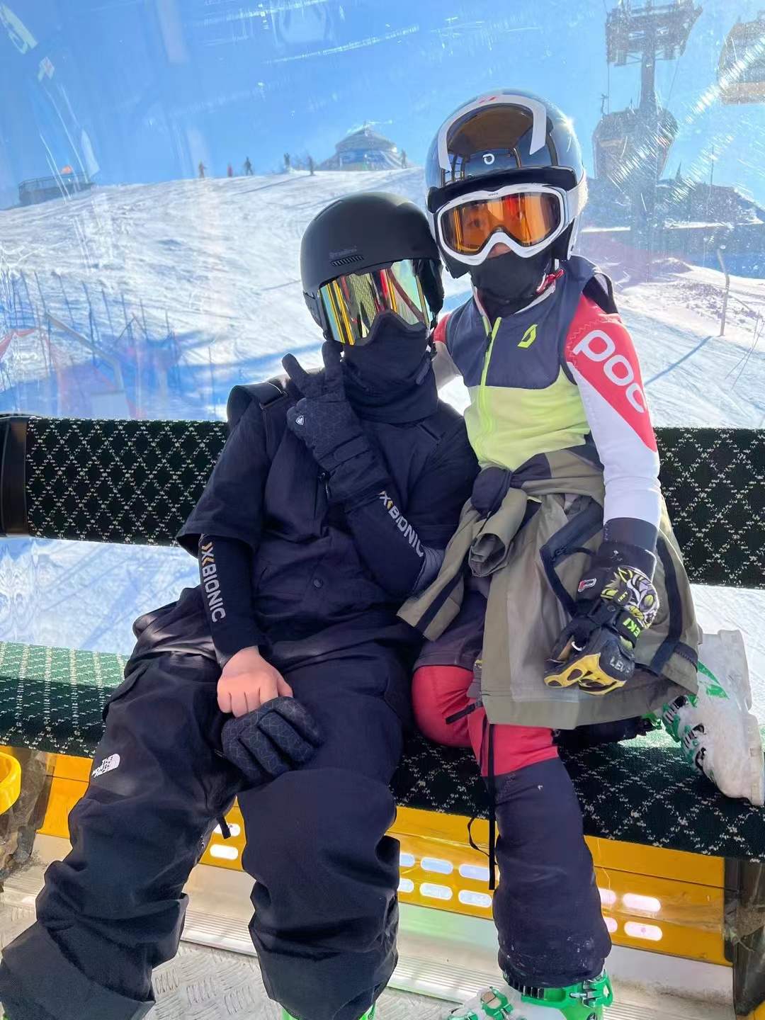 2020年初,在日本长野滑雪时,涵之一家上到雪山最顶端,却发现都是高级雪道,而他们当时只会冲坡,不会拐弯,只得坐缆车下了山。“当时爸爸不会滑,从上面‘滚’了下去。回来后,他觉得太丢人了,决定下次去滑雪一定要从山顶滑下来,于是开始在广州一间室内滑雪场带着孩子一起练习。”涵之妈妈笑道。