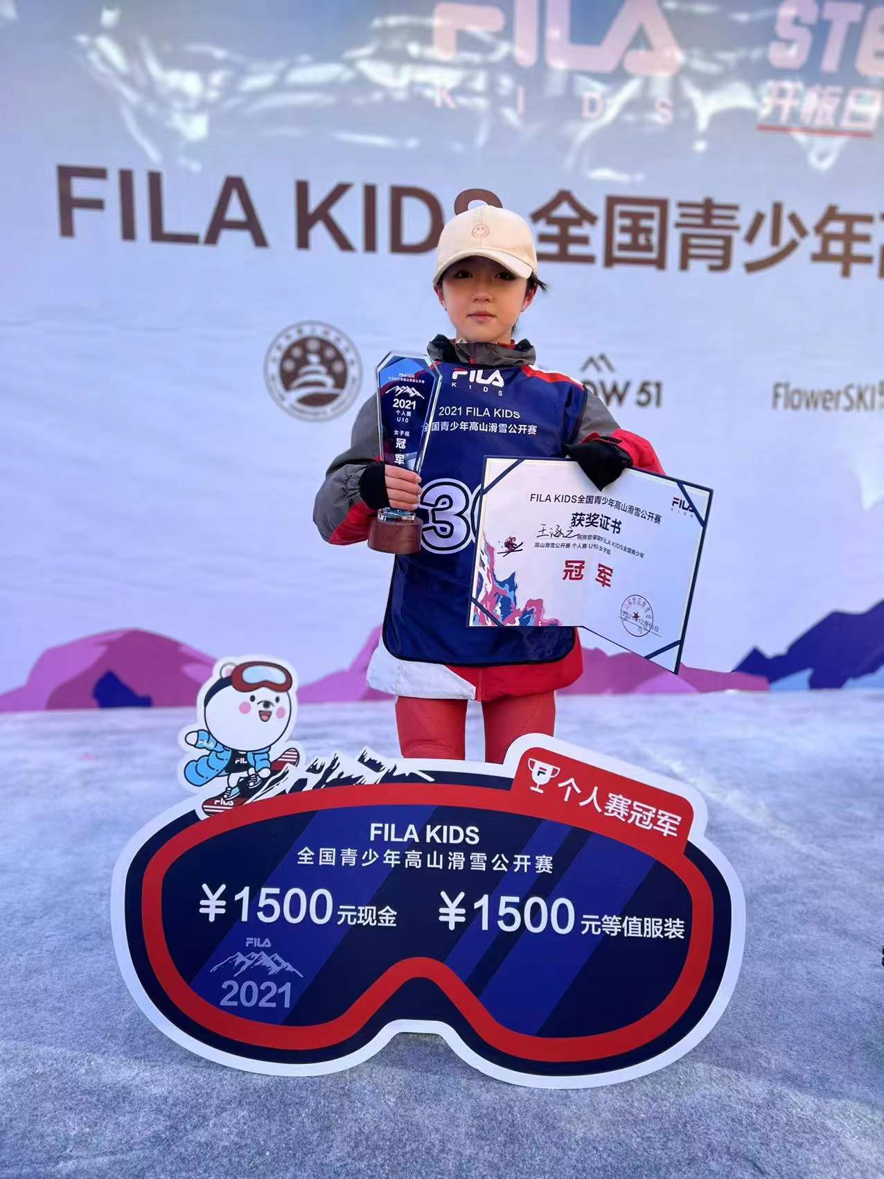 在FILA KIDS全国青少年高山滑雪公开赛中,王涵之夺冠。
