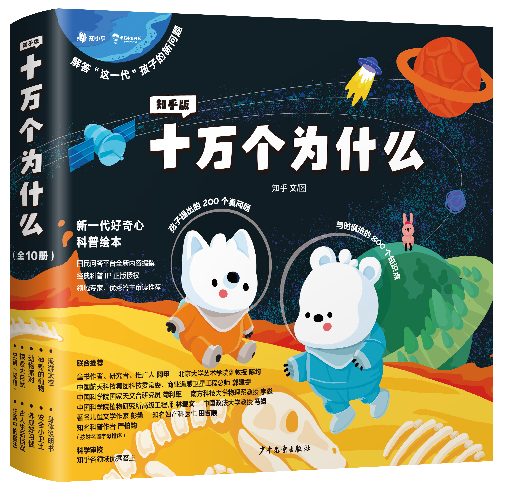 时值少儿经典科普《十万个为什么》出版 60 周年,知乎,中国最大的问答社区,携手上海少年儿童出版社,推出全新《知乎版十万个为什么》,解答“这一代”孩子的新问题。该书收集当代孩子的真问题,邀请各领域机构和专家为孩子们写下新答案,是献给中国孩子的与时俱进科普启蒙。