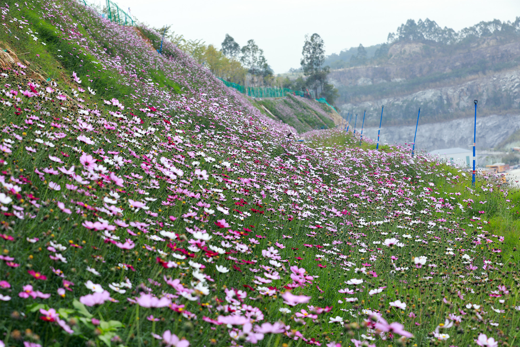 一开始的挫败并没有让顺兴石场的团队气馁,他们与华南农业大学等多家科研单位开展合作,一起研究如何在特殊的自然条件下将草木种活,达到边开采边复绿的效果。