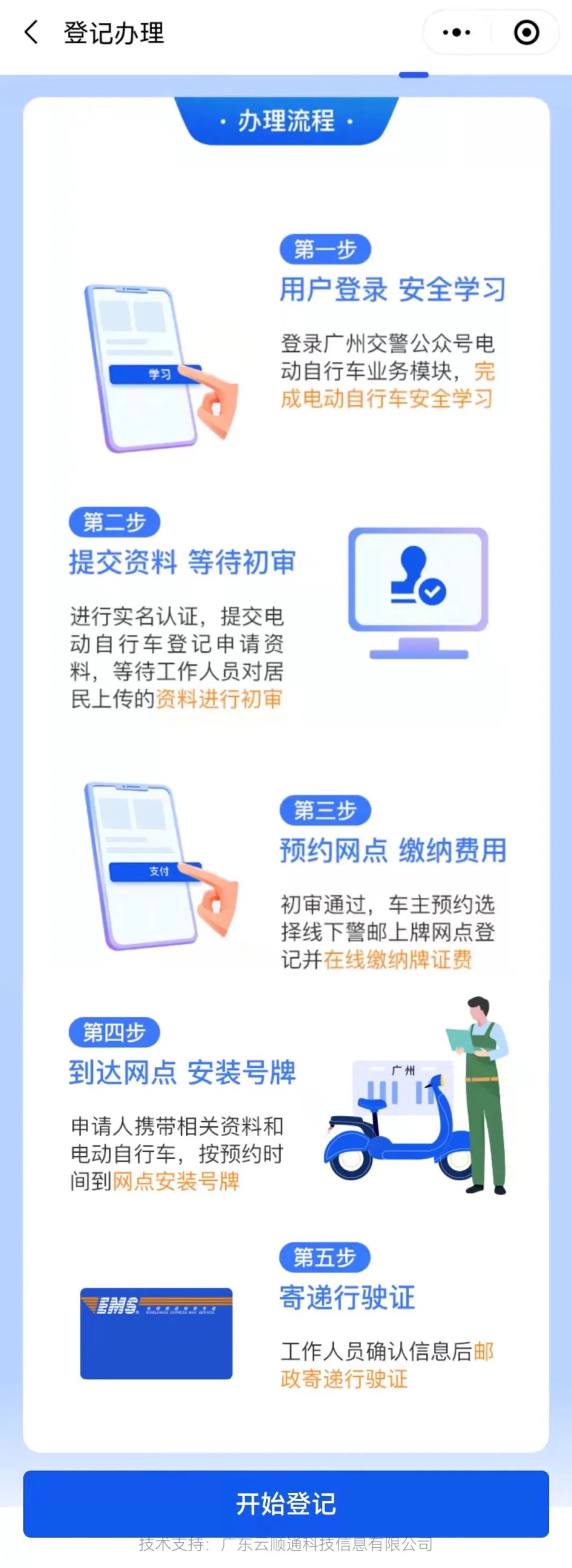 在“广州电动自行车上牌”小程序内,输入车架号验证,通过3C认证的上白牌,不通过的上黄牌。