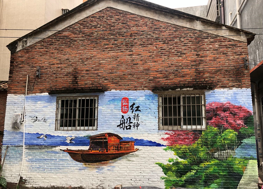 为进一步巩固辖内党组织建设成果,东沙街道党工委全面统筹协调落实,因地制宜,在南漖一河两岸的房屋墙面设计南漖村党史学习教育主题彩绘。彩绘墙保留南漖历史建筑和龙舟竞赛特色元素,结合南国水乡特色及人文生活场景特点,全面改善南漖村居环境。