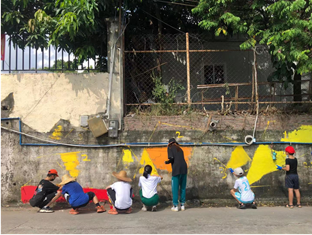 除外聘专业彩绘人员以外,社区充分发动学生代表、居民、党员志愿者对墙绘场所进行清理、刷白、彩绘等。截至目前,已完成第一期和第二期约300平方米面积的彩绘工程,预计下一阶段还需完成约100平方米的墙绘面积。