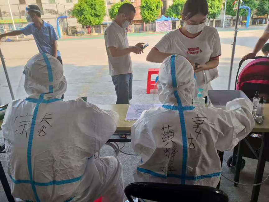 何敬宗、黄静婵夫妇,是东沙街道办事处来穗中心在抗疫一线工作上的一对“夫妻档”,在去年疫情防控期间,丈夫何敬宗负责防疫物资的运输工作,而妻子黄静婵则在核酸检测现场负责为居民核对信息、扫码录入等工作。这对乐观开朗的夫妇穿上厚重的防护服后,都会在对方的背后写上名字,还经常笑称这是他们最特别、最美的一套“情侣装”。