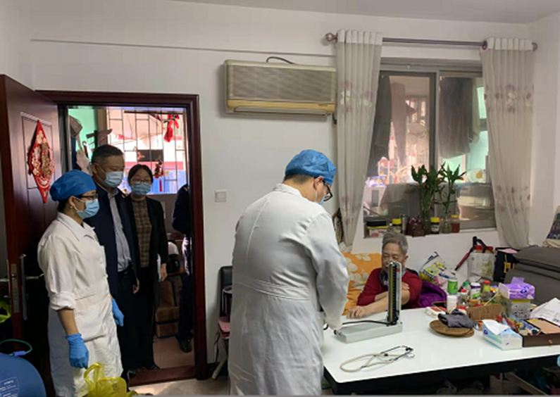 东沙街党工委安排社区卫生服务中心的医护人员为行动不便的老年人提供上门接种服务。