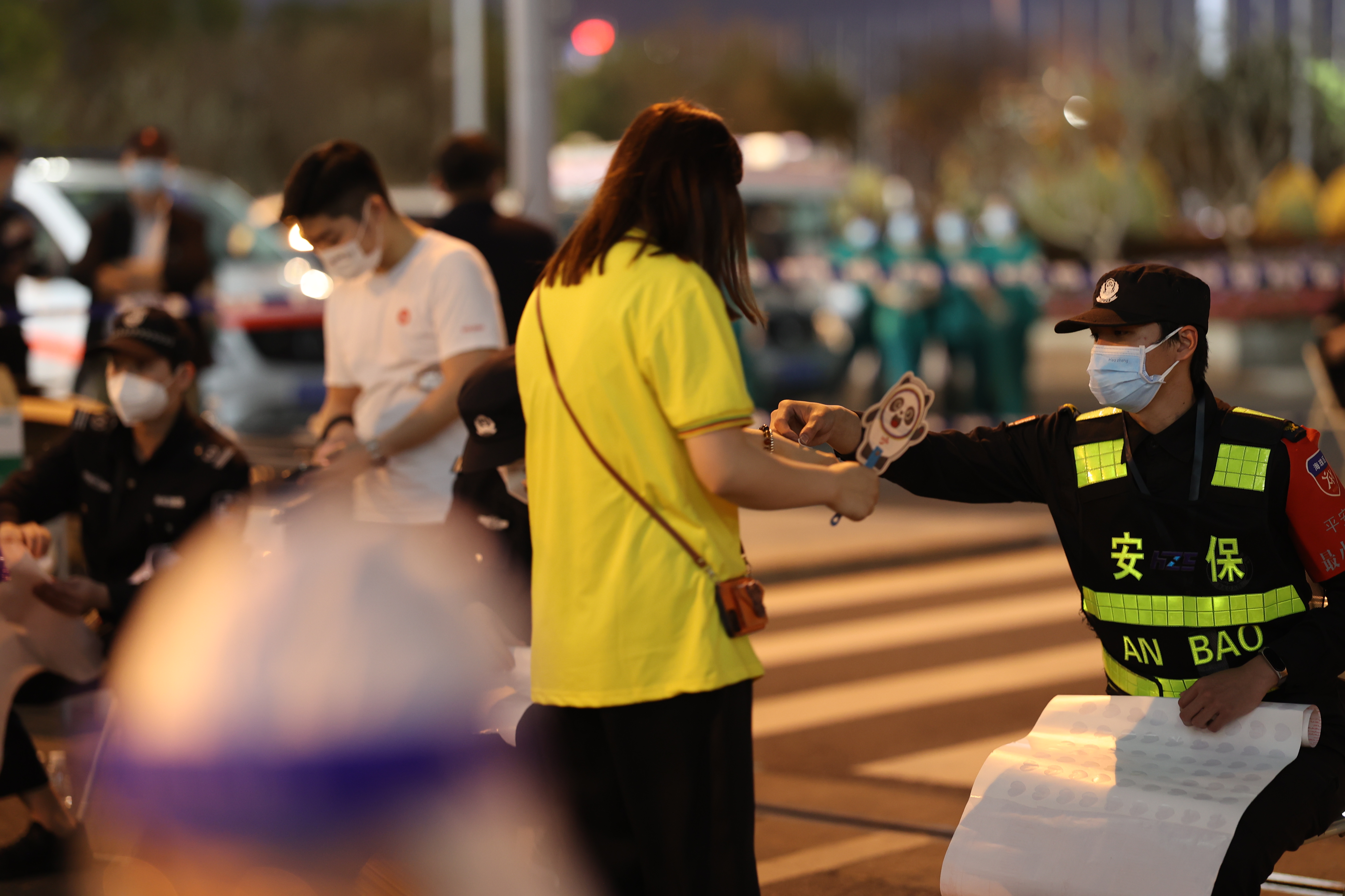 从傍晚6时开始,不断有海珠区各条战线的人员、志愿者来到琶洲展馆支援。海珠区教育局就召集了200多名工作人员和学校老师坐地铁赶来支援。海珠区辖内医院医务人员、物业管理人员也不断抵达琶洲展馆投入工作,助力参展人员尽快完成核酸检测。