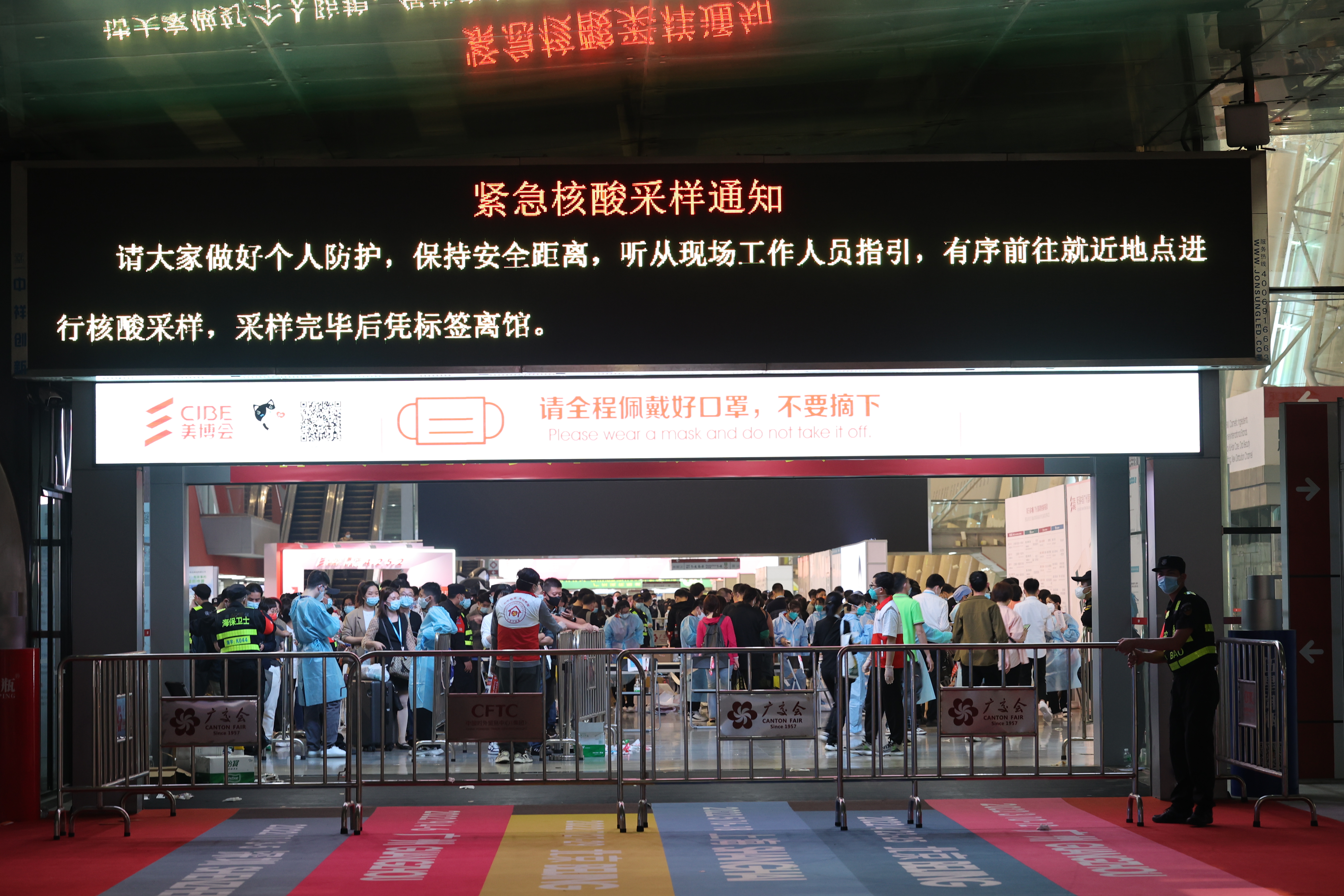 当天琶洲展馆内有多场展会活动。中午时分开始,展馆发布采取“临时封闭、不进不出”的管控措施。