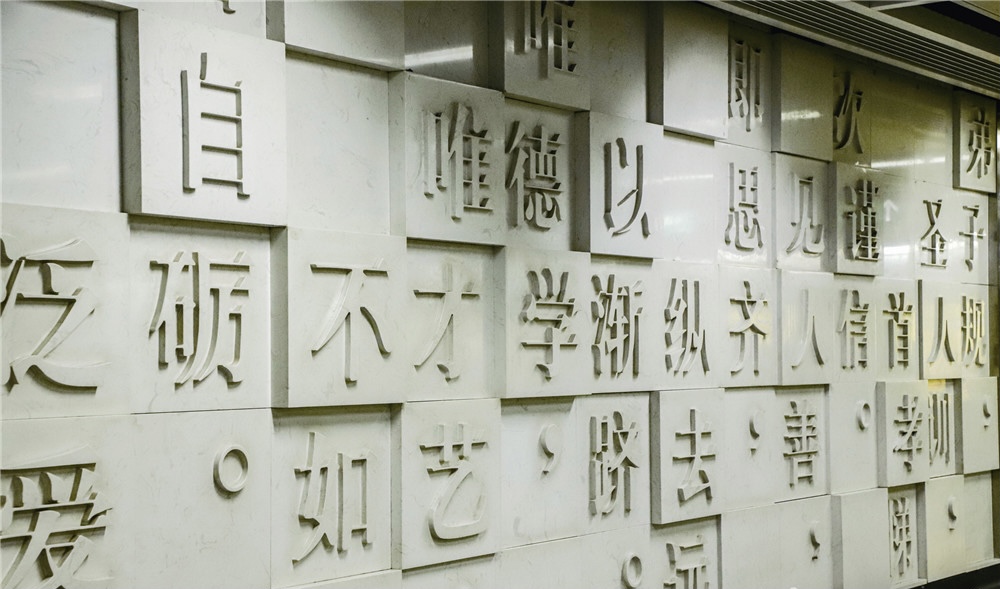 番禺的地铁站处处流露出文化的气息。4号线的大学城南地铁站运用活字印刷术和弟子规设计的文化墙,将大学城这个学生的世界表现得淋漓尽致。