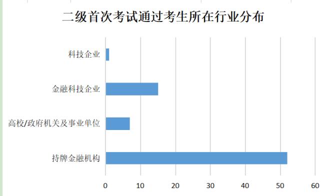 另外,通过考试的75名考生,广泛分布于多个不同的企业(单位)。其中,平安集团20人,占比约为26.67%;招商局集团9人,占比约为12%。大型机构通过考生数量较多,与其重视金融科技人才的方向是一致的。