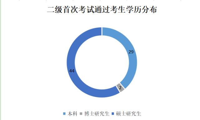 另外,本次考试,本科学历考生29名,硕士研究生学历考生44名,博士研究生学历考生2名。硕士研究生或以上学历考生占比61.33%。高学历人群成为金融科技人才的重要组成部分,符合社会各界对金融科技行业高素质复合型人才的普遍认知。