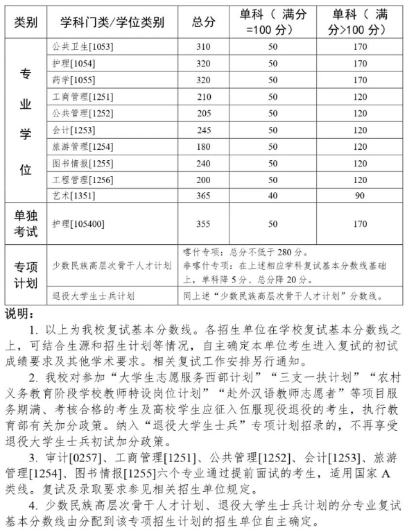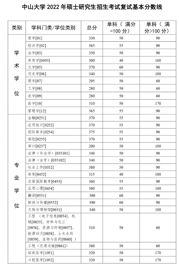 中山大学2021年硕士生复试基本分数线