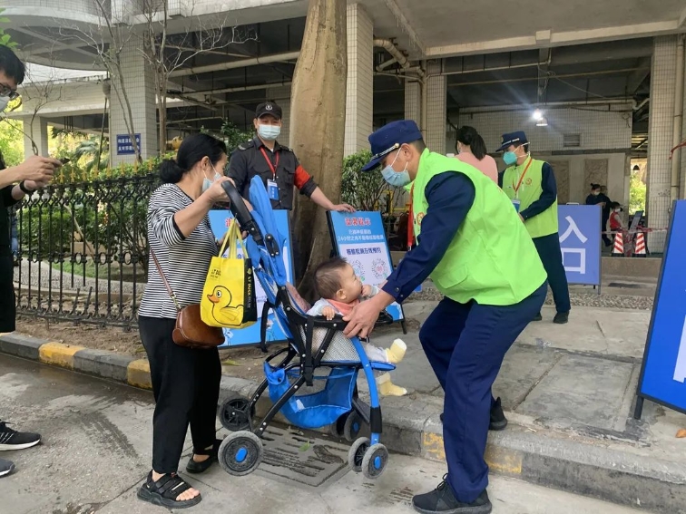 他们身穿“天河区青年志愿者”绿马甲,忙碌的身影在人群中来回穿梭,一丝不苟地引导居民群众按照一米线排队、戴好口罩,提醒络绎不绝前来核酸检测的居民群众避免聚集、扎堆,有序候检,提前填写相关信息和出示“粤康码”,帮助不会使用智能手机的老人扫码、填写个人信息,并协助开展秩序维持、信息登记、物资清点等志愿服务工作,现场井然有序,进展顺利。