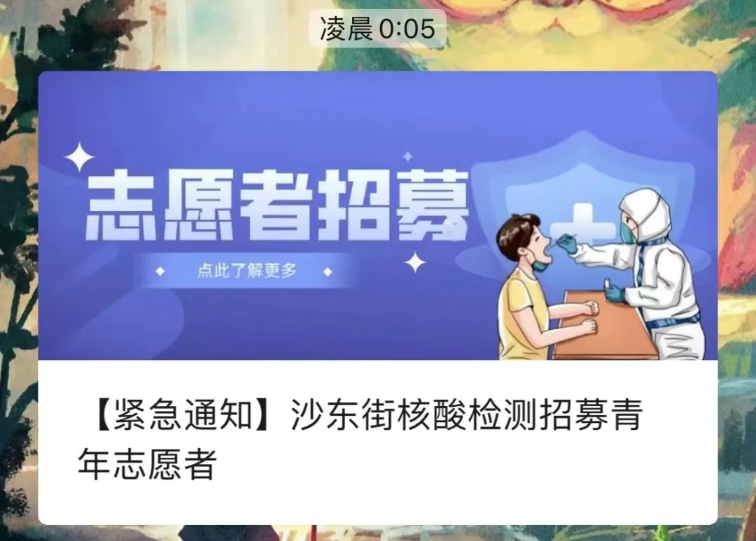 因疫情防控需要,天河区于3月11日启动沙河街、沙东街第二轮全员核酸检测工作。共青团天河区委员会闻令而动,迅速响应,第一时间安排专人及时与街道对接,收集志愿服务需求,并在“青春天河”微信公众号、志愿者微信储备群、“i志愿”系统等多渠道发布志愿者招募令。