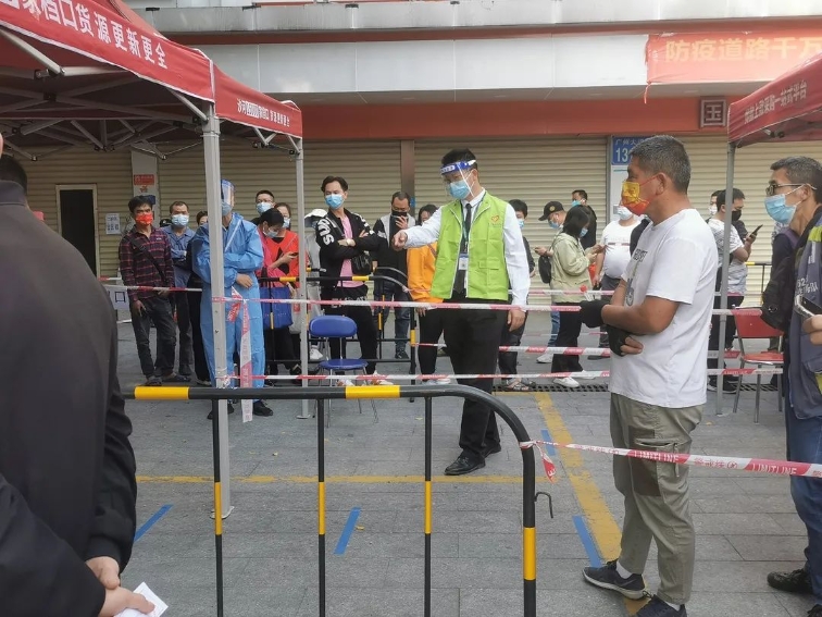 在沙河街万佳核酸检测点,现场排起了长队,来自广州贝壳找房的志愿者小马正在现场忙碌,他主要的任务就是提醒居民群众按一米线排队,提前扫码填写个人资料。据了解,这次是他第二次参与天河区全员核酸检测志愿服务,能有机会参与到疫情防控一线,一起为疫情防控贡献自己的一分力量,他感到由衷的骄傲和自豪。