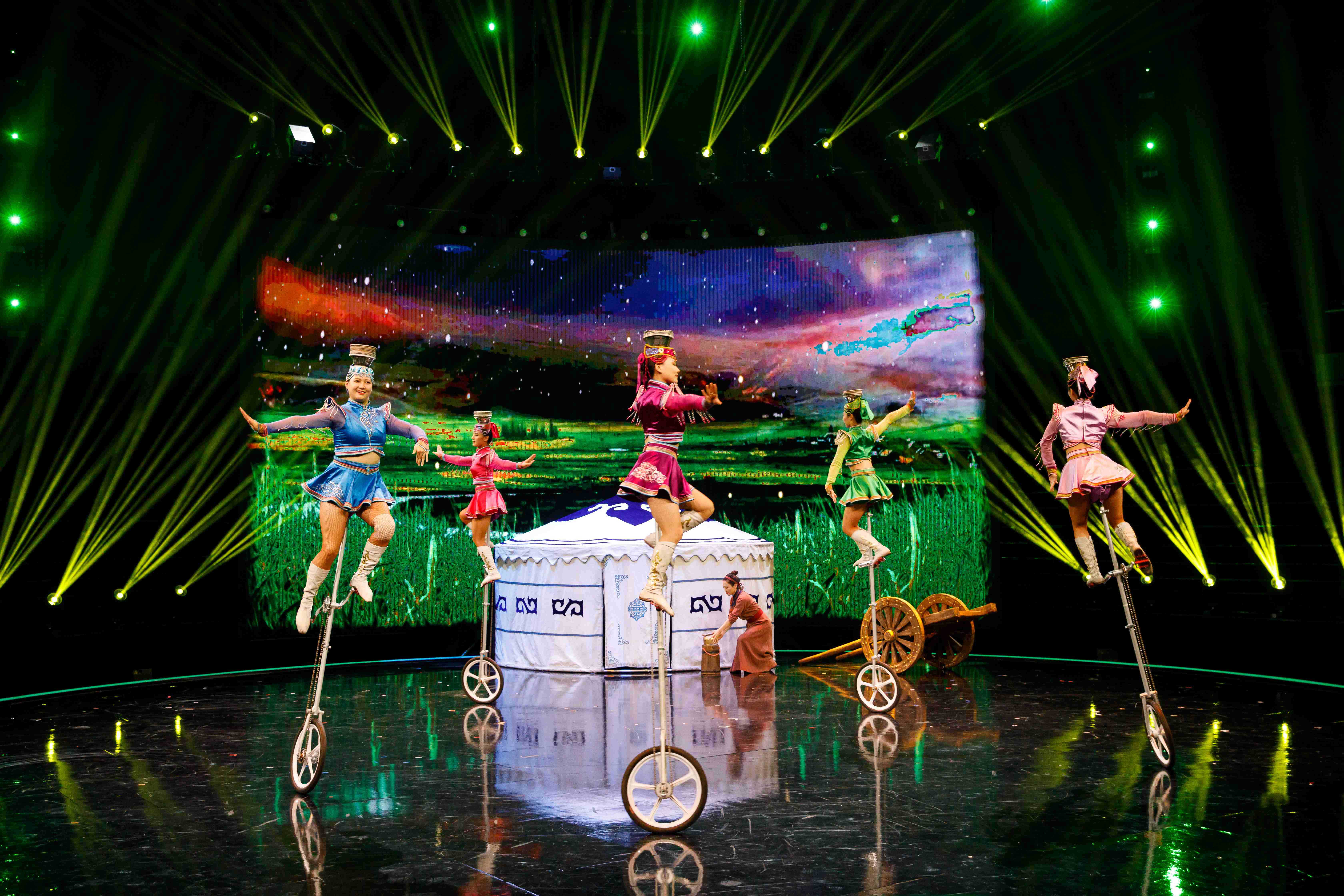 经历五十年不断改革创新,高车踢碗成为内蒙古艺术剧院杂技团的王牌节目。由五位内蒙古艺术剧院杂技团演员组成的“踢碗姐妹淘”,以《天边的珊丹花》在舞台掀起浓郁的内蒙古风情。