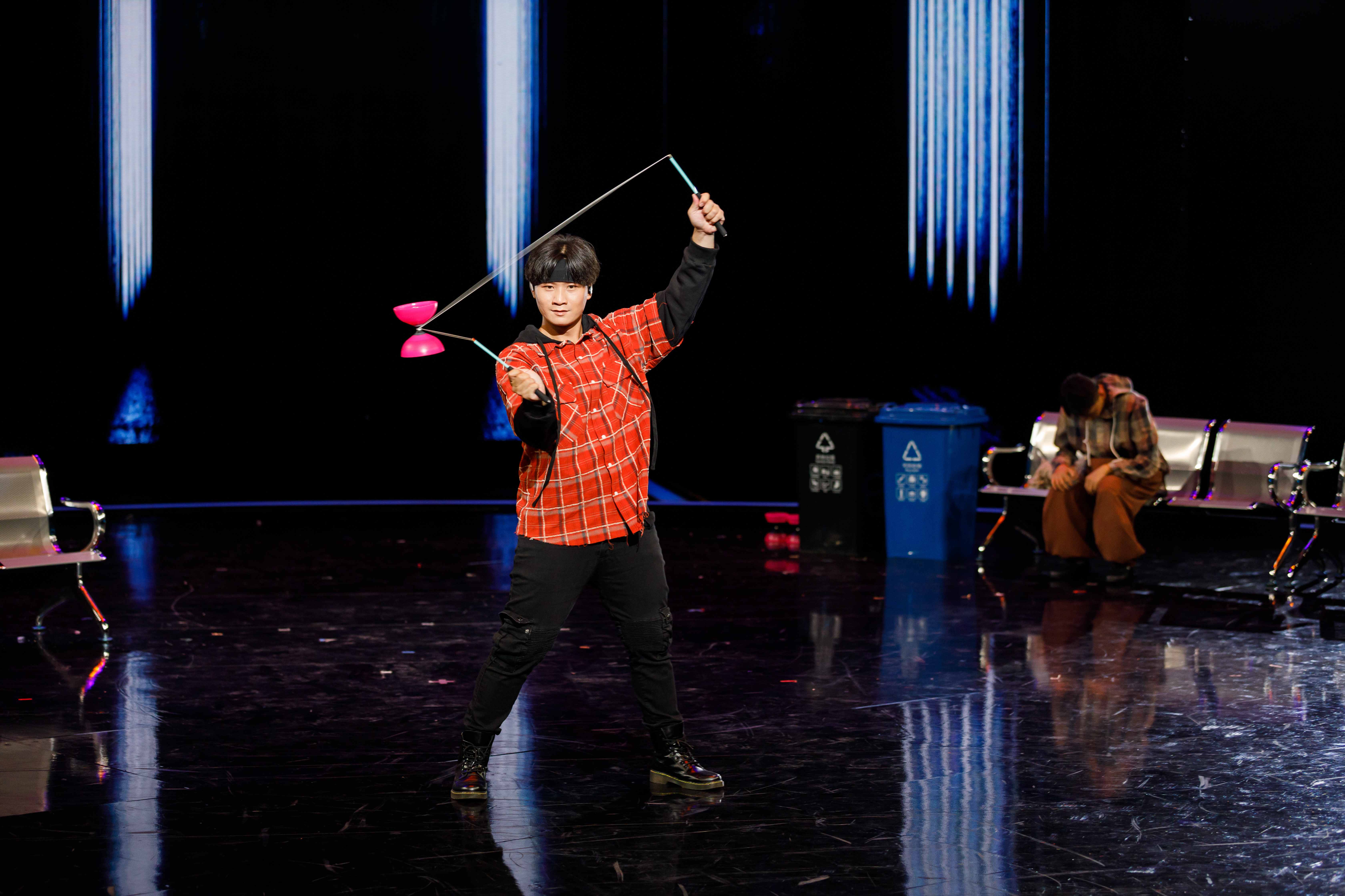 小小的空竹也有巨大的能量,节目中赵昱凇高能演绎《喧嚣之下》,他如同武功高强的太极高手,无比轻松地完成一个个酷炫招式,其中不乏他自创的独门技艺。