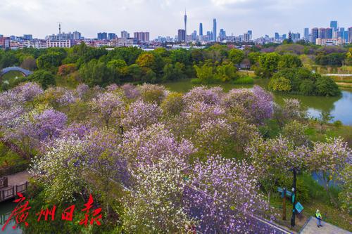 据了解,宫粉紫荆的最佳赏花期估计将在3月中旬,市民不妨到海珠湿地公园欣赏这一年一度的紫粉时节。