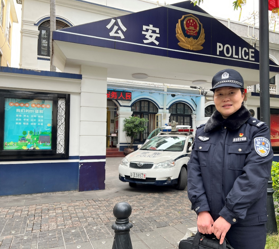 今年52岁的资艳阳是沙面两名社区民警之一,在沙面派出所工作已有5年时间。在这5年里,她心系社区和群众,竭力打造安全有序舒适的社区环境,守护一方平安。