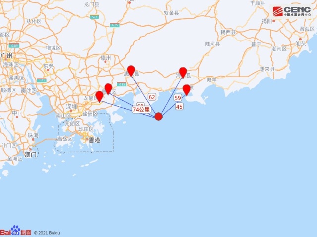 不少網友表示,深圳、廣州、惠州、汕尾等地,以及香港均有震感。