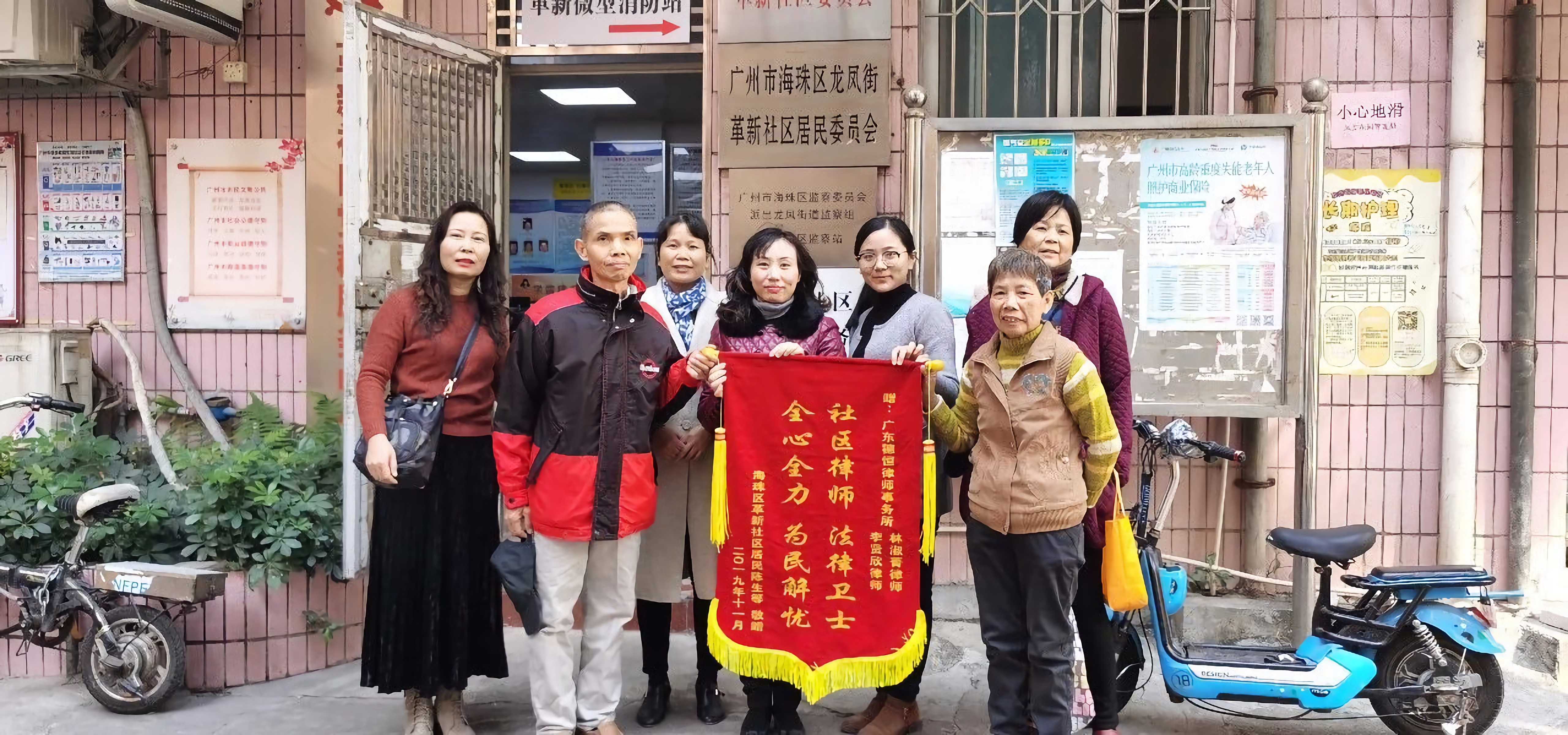 社区居民为林淑菁和团队赠送锦旗