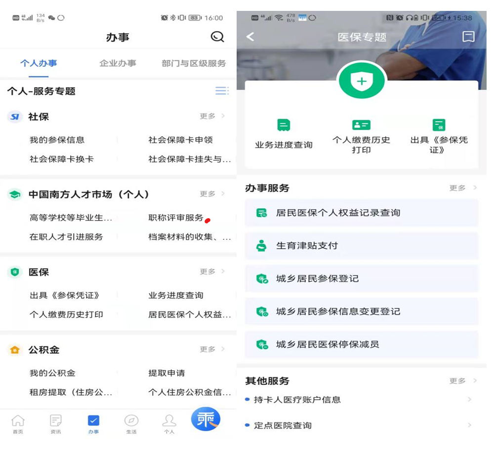 1.打开“穗好办”App“办事”页,进入“医保专题”,点击“更多”;