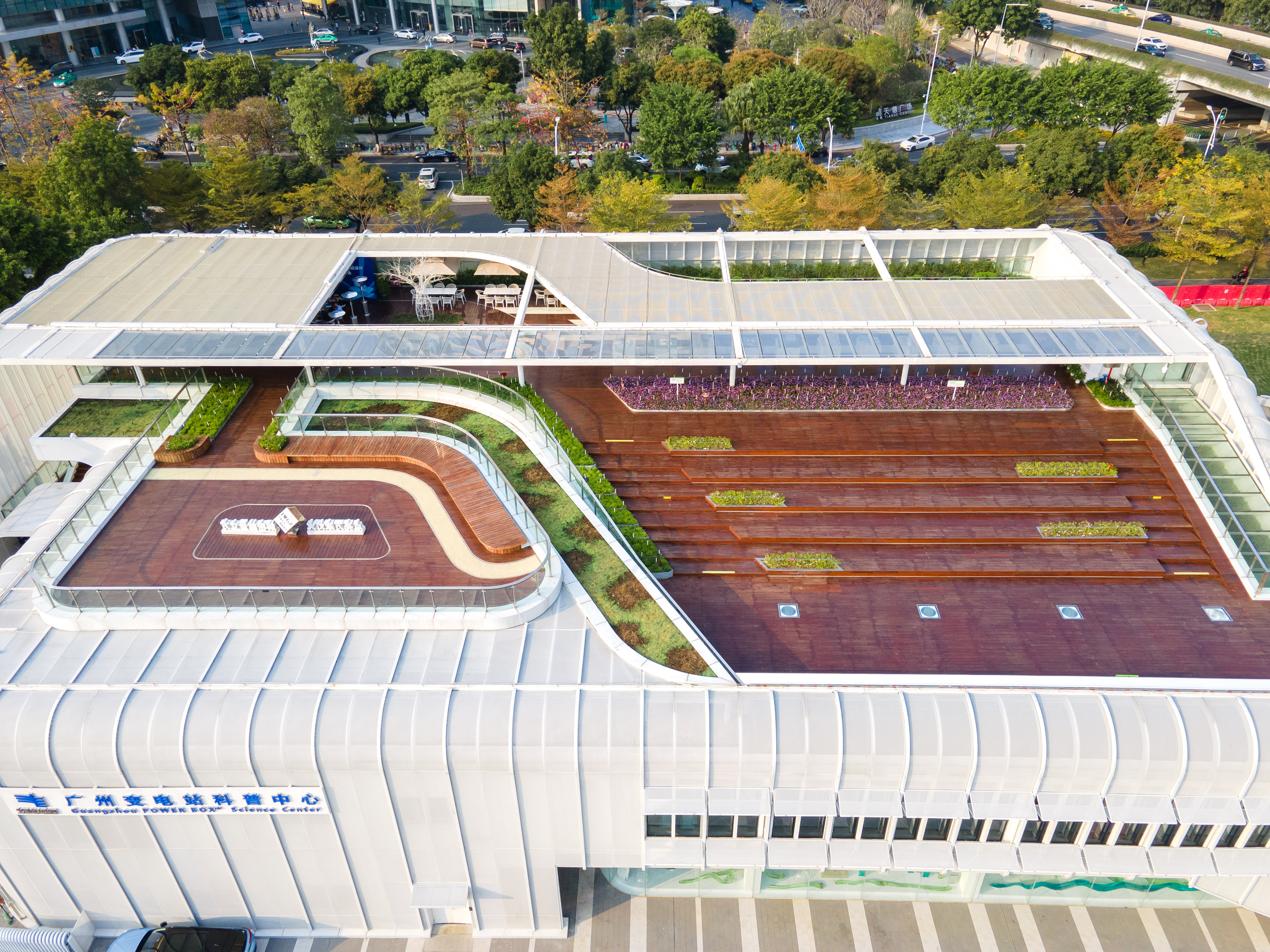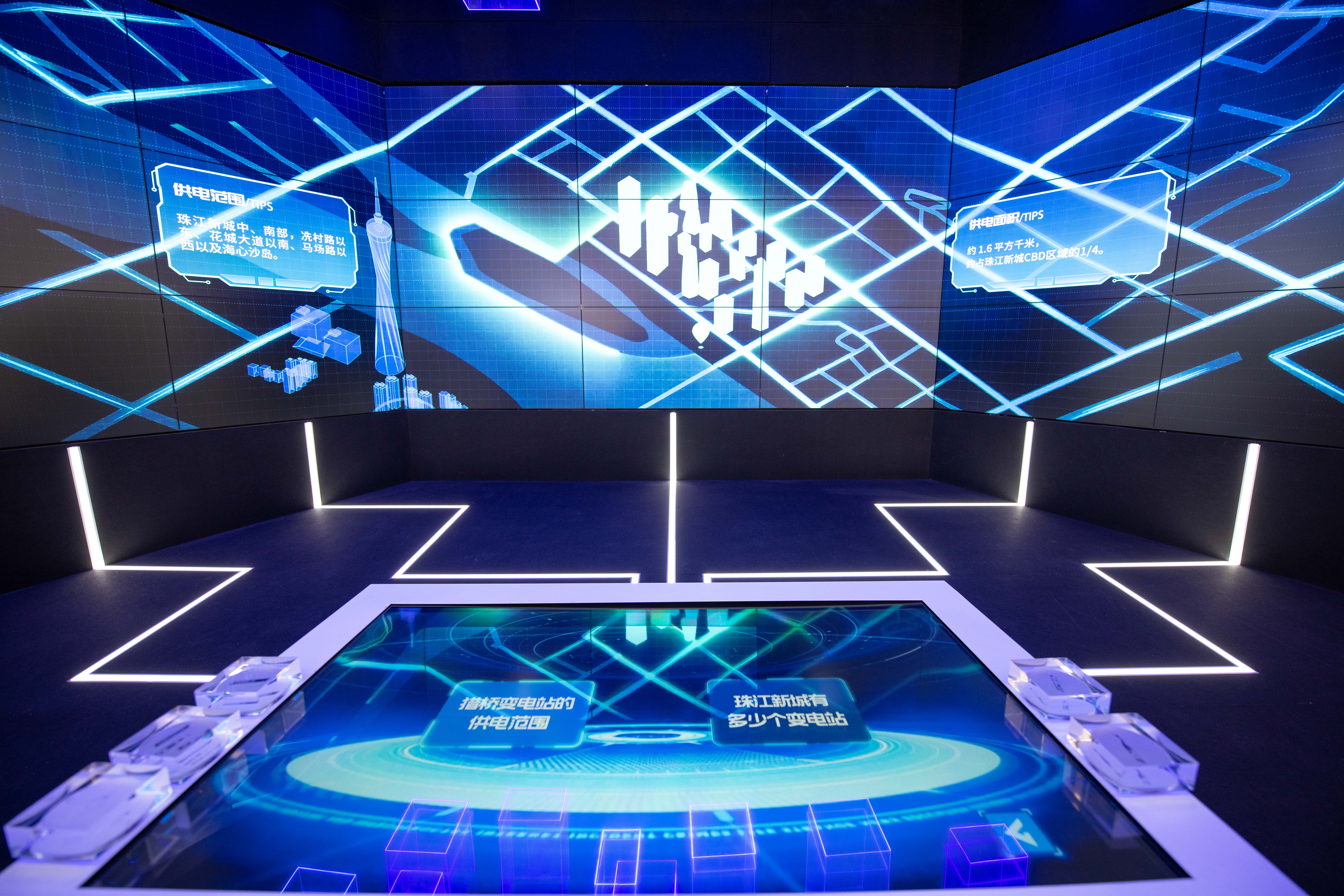 变电站还兼具科普教育的功能。在这个颇具未来感的科普中心里,你可以走过一条“时光隧道”了解广州电力建设从无到有的过程;也可以坐在新媒体沉浸式影院里,看一段未来变电站的科幻短片。此外,猎桥变电站还是全国首个获得国际、国标绿色建筑双认证的变电站,天台顶棚铺设了特制发电玻璃,年平均发电量约20000度,实现变电站的低碳节能;屋顶通过海绵城市系统收集并净化雨水,用作变电站内的清洁、生活和绿化用水,预计年节约用水量可达1800立方米。