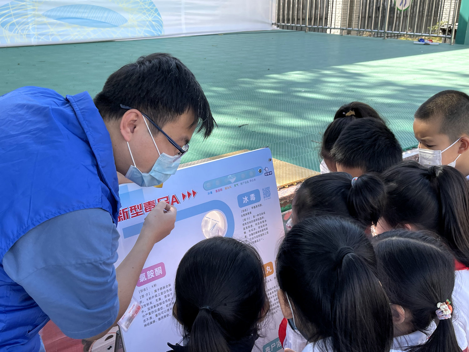 工作人员为学生们现场讲解禁毒知识