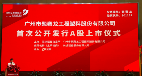 广州市聚赛龙工程塑料股份有限公司是从化区第一家上市的本土企业,也是从化区优质企业走向资本市场、开放发展的里程碑,它标志着从化区在深化资本市场改革、推动企业登高上市方面取得了突破性的发展。
