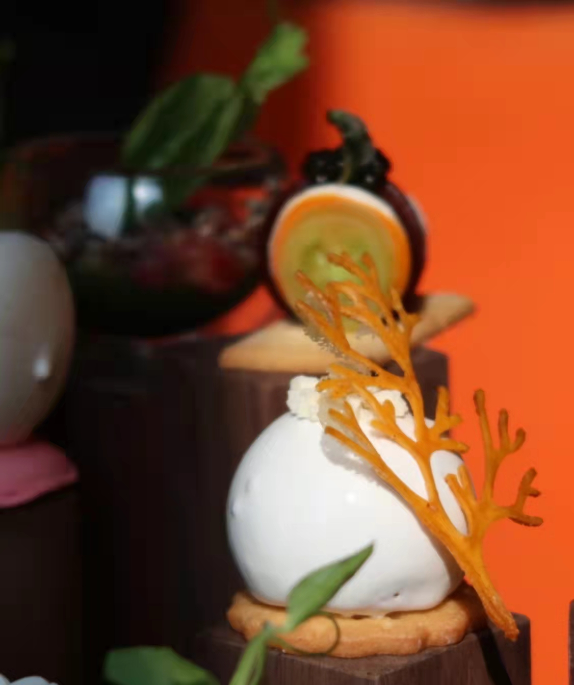 不独中餐,西餐西点厨师也欣赏香椿之好,将其融入到现代西式料理中。
