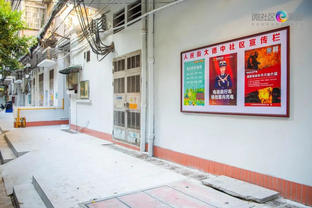 小e在濠畔街的共建共治共享宣传栏上,看到上面记录了大德中社区开展日常工作的亮点,如完善议事协商机制,解决关乎居民群众切身利益的实际困难问题;开展居家安全义务诊疗、居家义剪服务、社区金融风险防范服务等特色志愿项目等。宣传栏上的这些内容,能让居民一目了然地了解社区文化。