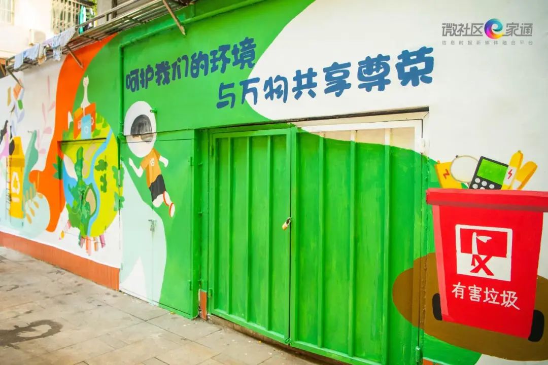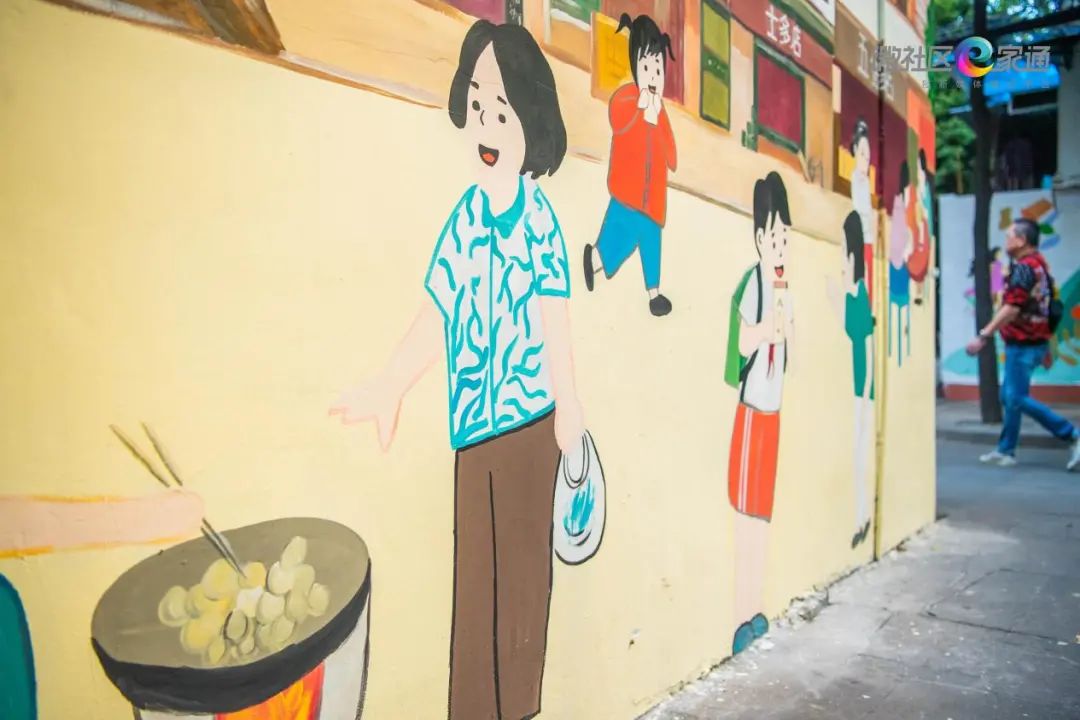 此外,大德中社区内还增设了墙绘创作,热心居民参与绘画。背着书包的学生与好友结伴上学,路边的小吃店里顾客正享受着美食,邻里街坊间聊天话家常……这些极具烟火气的画面,让社区更富有生活气息。现场也增设了以“垃圾分类”为主题的墙绘,色彩鲜明的壁画成为社区内一道靓丽的风景线。通过这种充满艺术气息的宣传形式,人民街引导居民自觉做好家庭生活垃圾分类,维护社区环境卫生。