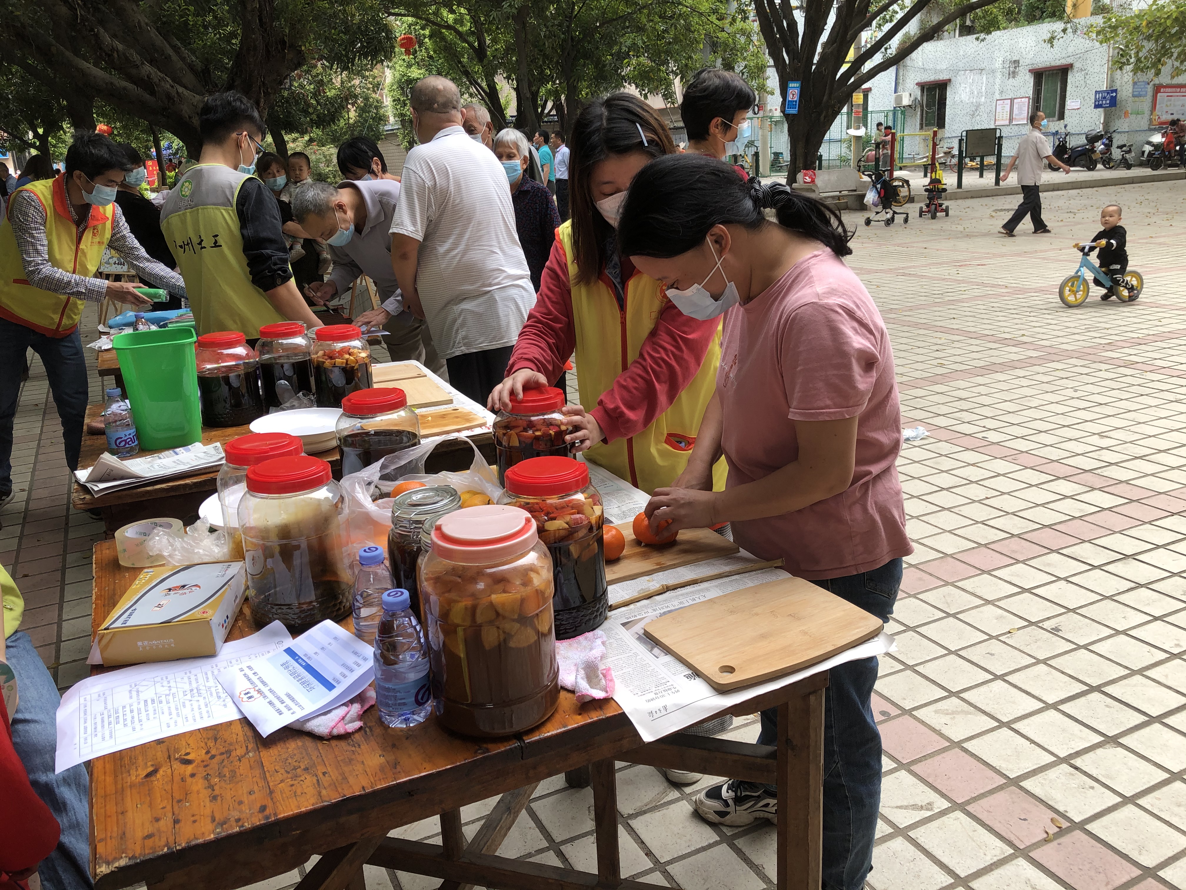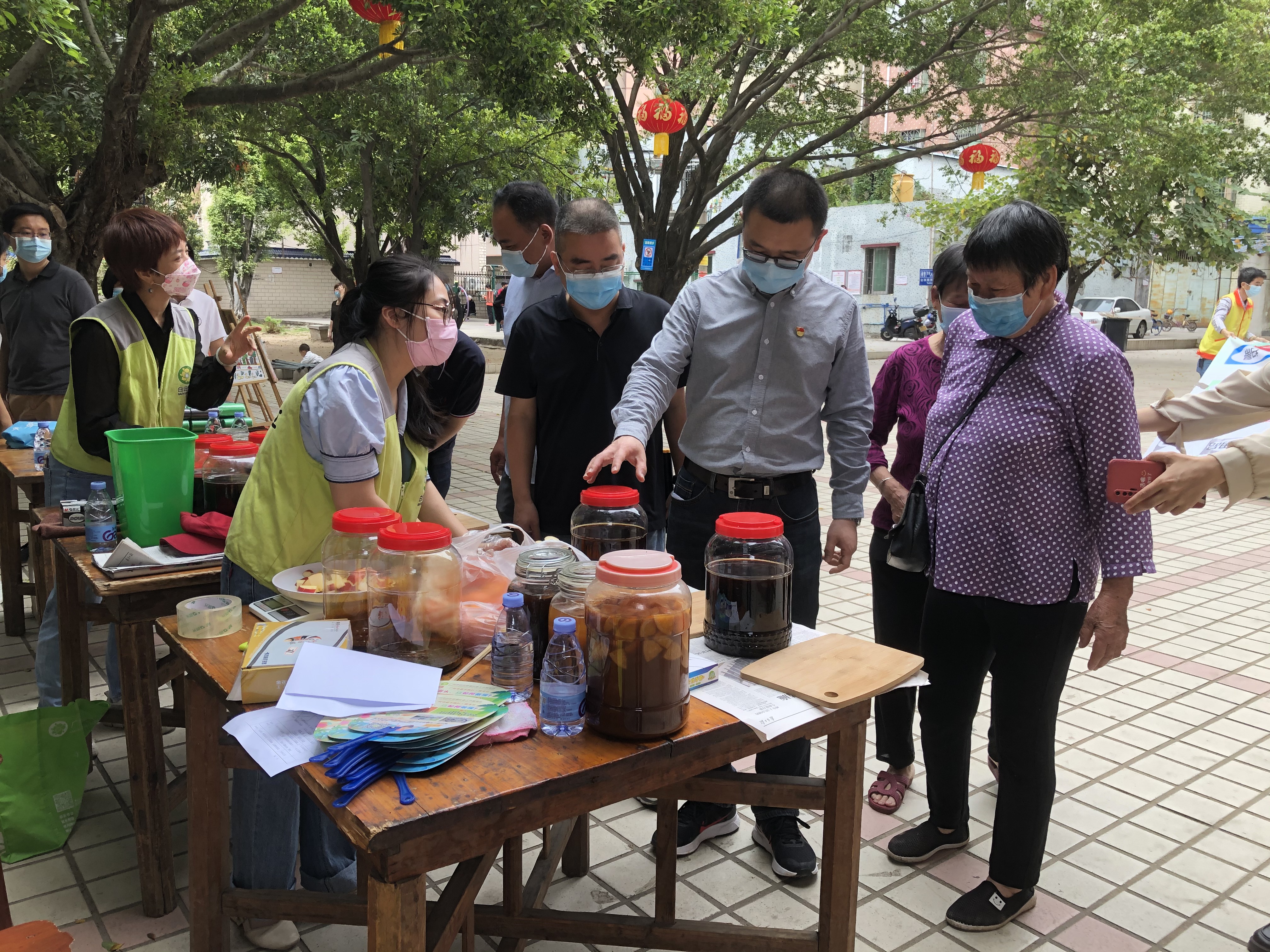 居民体验环保酵素变废为宝制作活动
