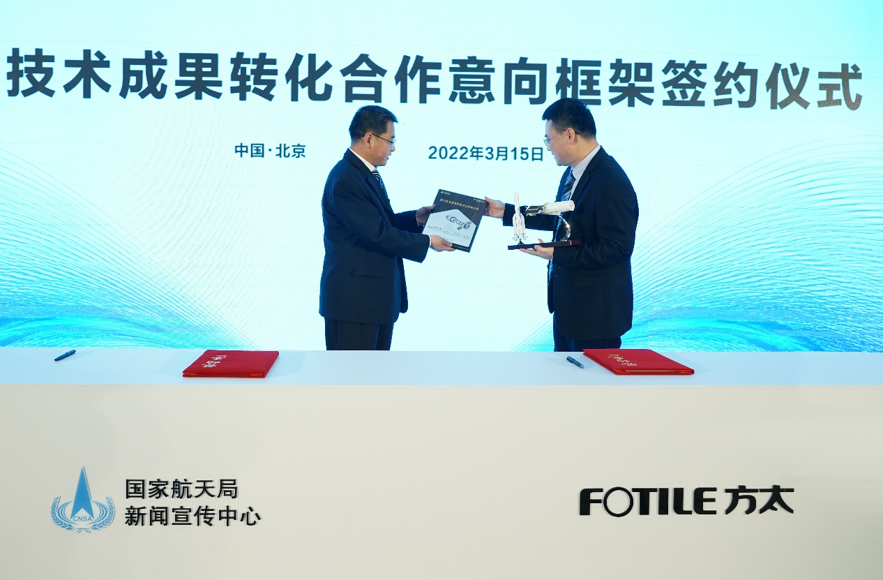 《2022航天技术成果转化合作意向框架协议》签约仪式由国家航天局新闻宣传中心副主任崔喜斌与方太集团中央研究院院长李斌共同签署,双方代表就下一步即将开展的技术合作交换了意见。