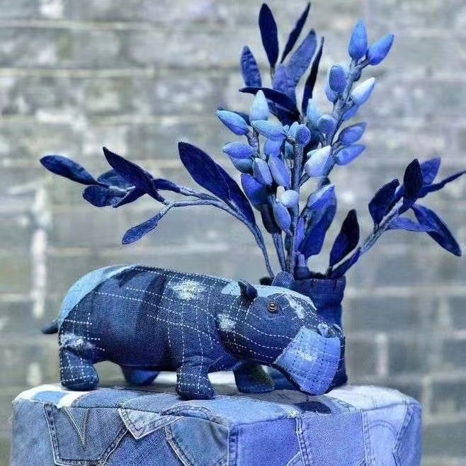 “我2005年在增城的新塘镇办厂的时候,最多有300多名工人,现在全职的工人只有几十名,订单量也比之前小了很多,但利润却比之前提升了。”钟小英介绍,多年来,她在增城新塘结识了不少牛仔厂的老板,他们很乐意无偿提供生产剩余的布头——既环保,又在无形中降低了生产成本。而她们制作的工艺品在国内外都有市场,“对方需要什么,我们就制作什么,比如,我们为荷兰的一个客户制作过牛仔郁金香花,为上海崇明的客户制作过土布艺术的公仔,也制作过广州的市花——木棉花等。”钟小英指着店内一头高大的梅花鹿介绍:“这种鹿最高我们做过5米的,可以卖到七八万元一只的价格。”此外,章镇文化还将牛仔与非遗结合的手工艺课程带入学校和企业进行培训和团建,也能收到课程服务费。牛仔手工艺技术结合时尚美学,钟小英在广州趟出了一条由单纯的轻工业向文旅创意产业和文化事业转型的新路。