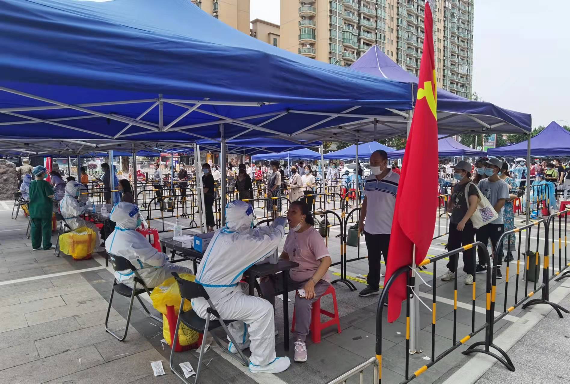 除了花城街,新华街也在有序开展核酸检测工作。从早上8点开始,花都区委宣传部和花都区人社局就派出30多名党员服务队支援新街村,在泓辉·银座大厦核酸监测点负责维持秩序、查码验码等工作。“泓辉·银座大厦一楼约2000多平方米,空间大,透风好。当该企业老板得知我们要进行核酸检测选点时,主动对接我们免费提供一楼作为监测点,全力支持我们做好疫情防控工作。”新街村党支部书记曾超波表示。截止目前,该检测点已完成检测8000多人。