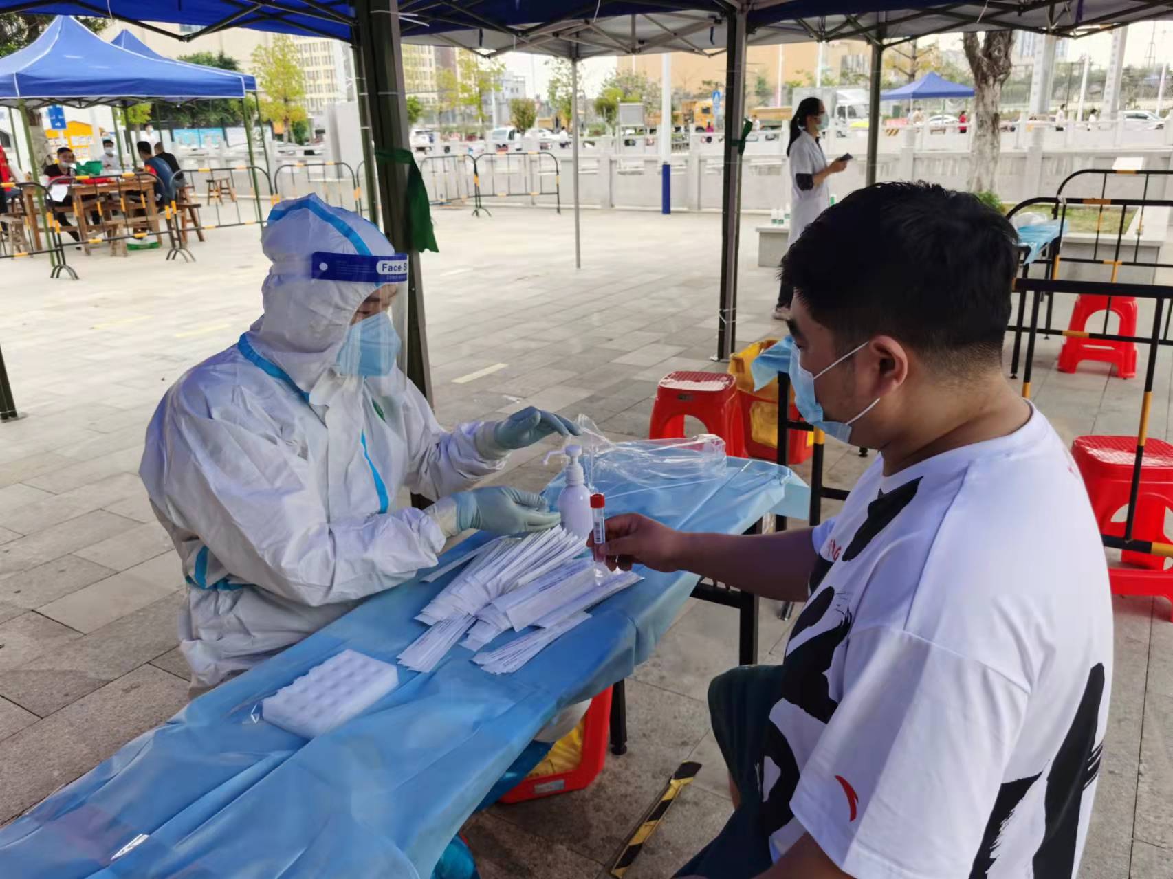据新华街纪工委副书记徐渝介绍,作为花都区有名的商圈,来又来广场本身就是核酸检测的常设点。在接到任务后,他们第一时间安排工作人员对原有监测点进行扩展布置,确保更多的人能够快速进行核酸检测。现场扫码、维持秩序、排队检测……在花都区科工商信局和融媒体中心党员先锋队的支援下,该检测点从早上8时起准时进行核酸检测工作,截止目前已经完成5700多例核酸检测。