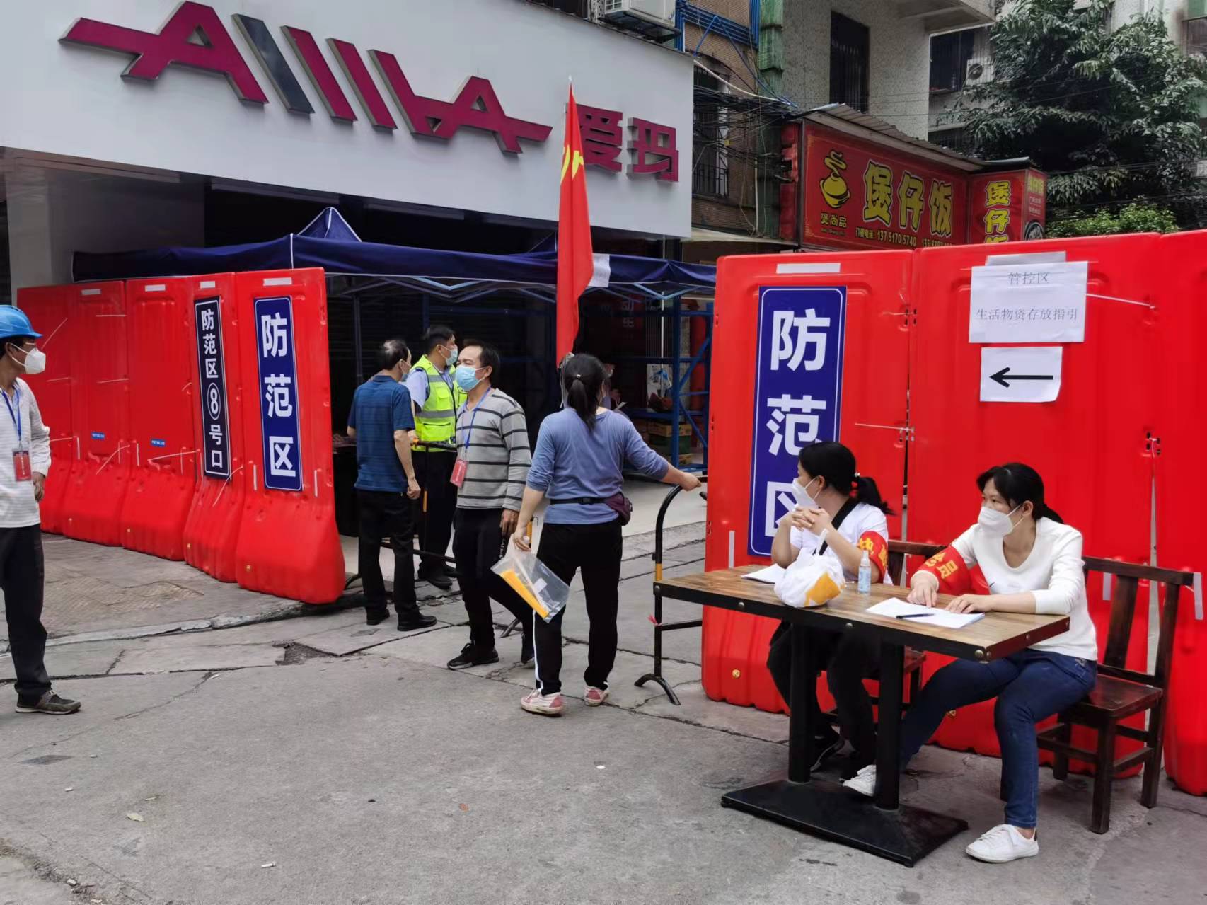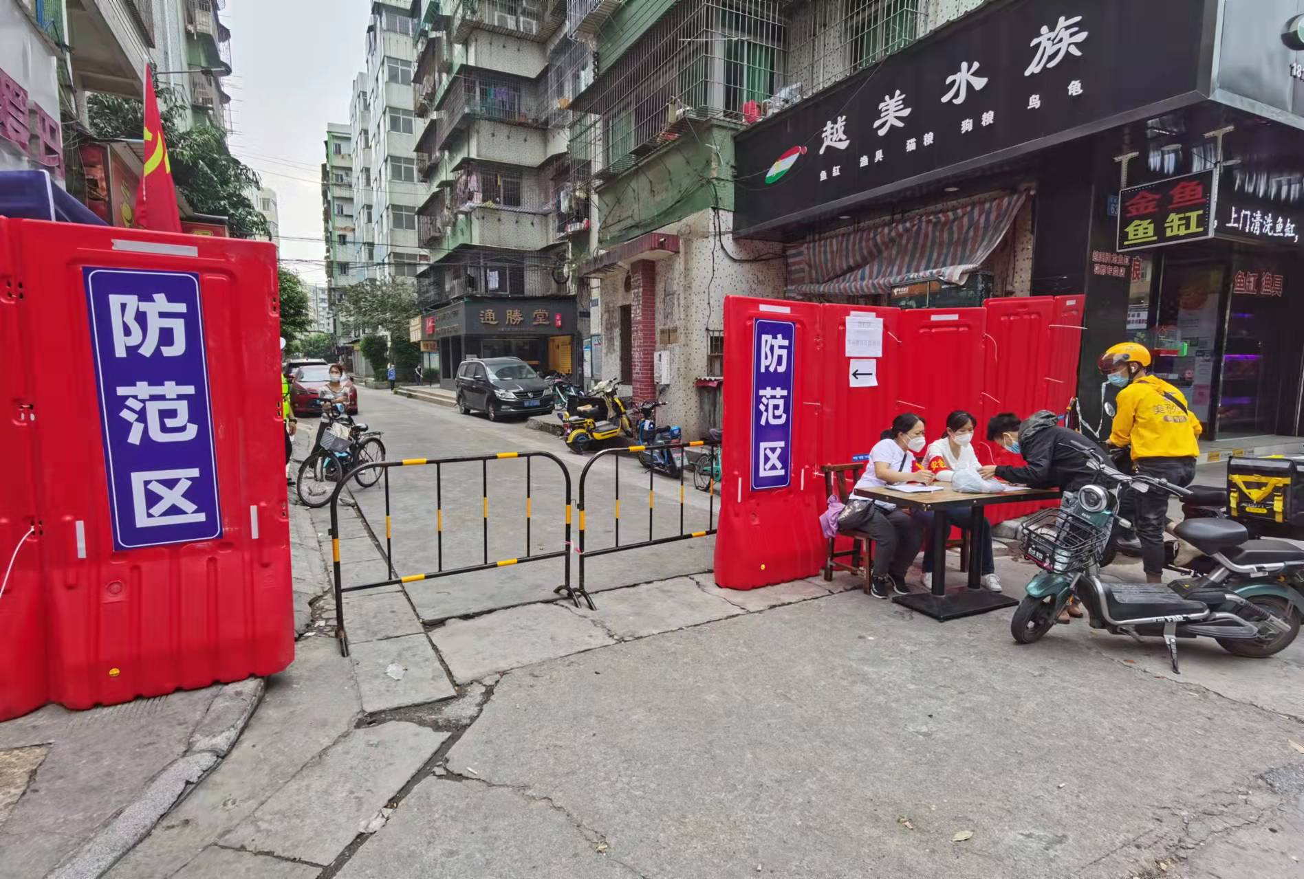 自2022年3月17日起,花都区新华街道辖内风险区域划分封控区、管控区、防范区。在现场记者看到,新华街管控区和封控区已用一排一排的水马层层封闭起来,真正做到“封控区足不出户,管控区人不出区”。